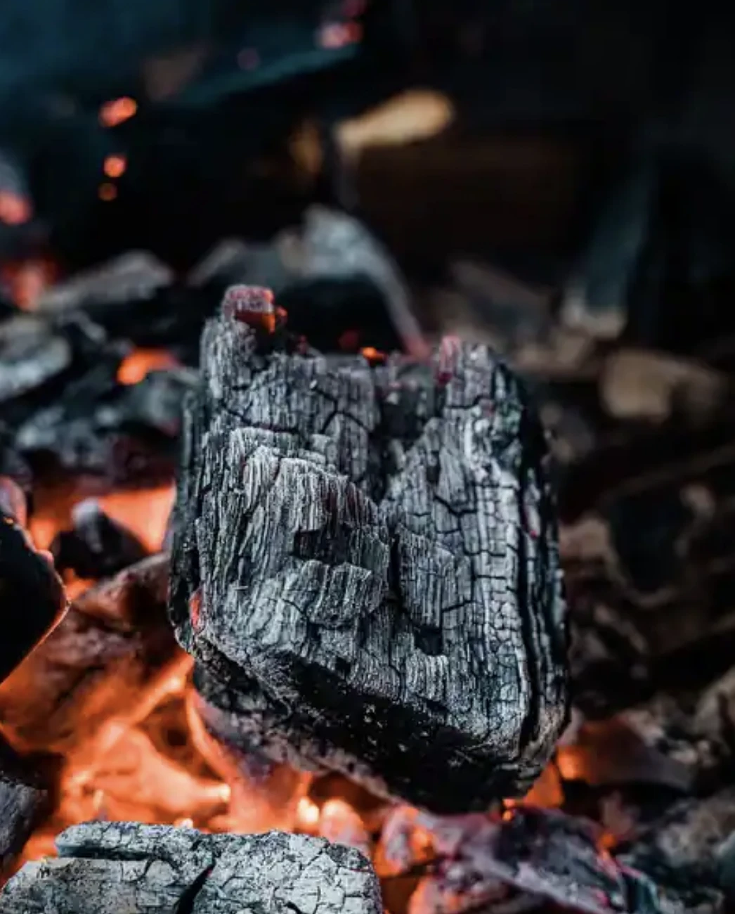 De grotere stukken (lump charcoal) worden zorgvuldig geselecteerd en gezeefd om een ideale mix van houtskool te creëren, variërend van ongeveer 40 tot 280 mm, verpakt in stevige Black Ranch zakken van 15 kg.