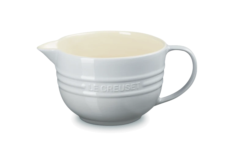 Gebruik de beslagkom van Le Creuset voor het mengen van beslag. Dankzij de handige tuit kunt u het beslag makkelijk schenken en door het grote handvat houdt u de kom stabiel tijdens het roeren. De kom is voorzien van een krasbestendige glazuurlaag waardoor deze ondoordringbaar is voor smaak- en kleurstoffen uit het eten.